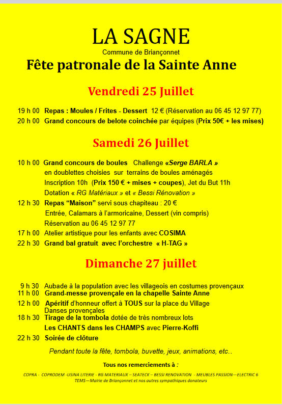 juillet 25 /8 h 00 min - juillet 27 /17 h 00 min