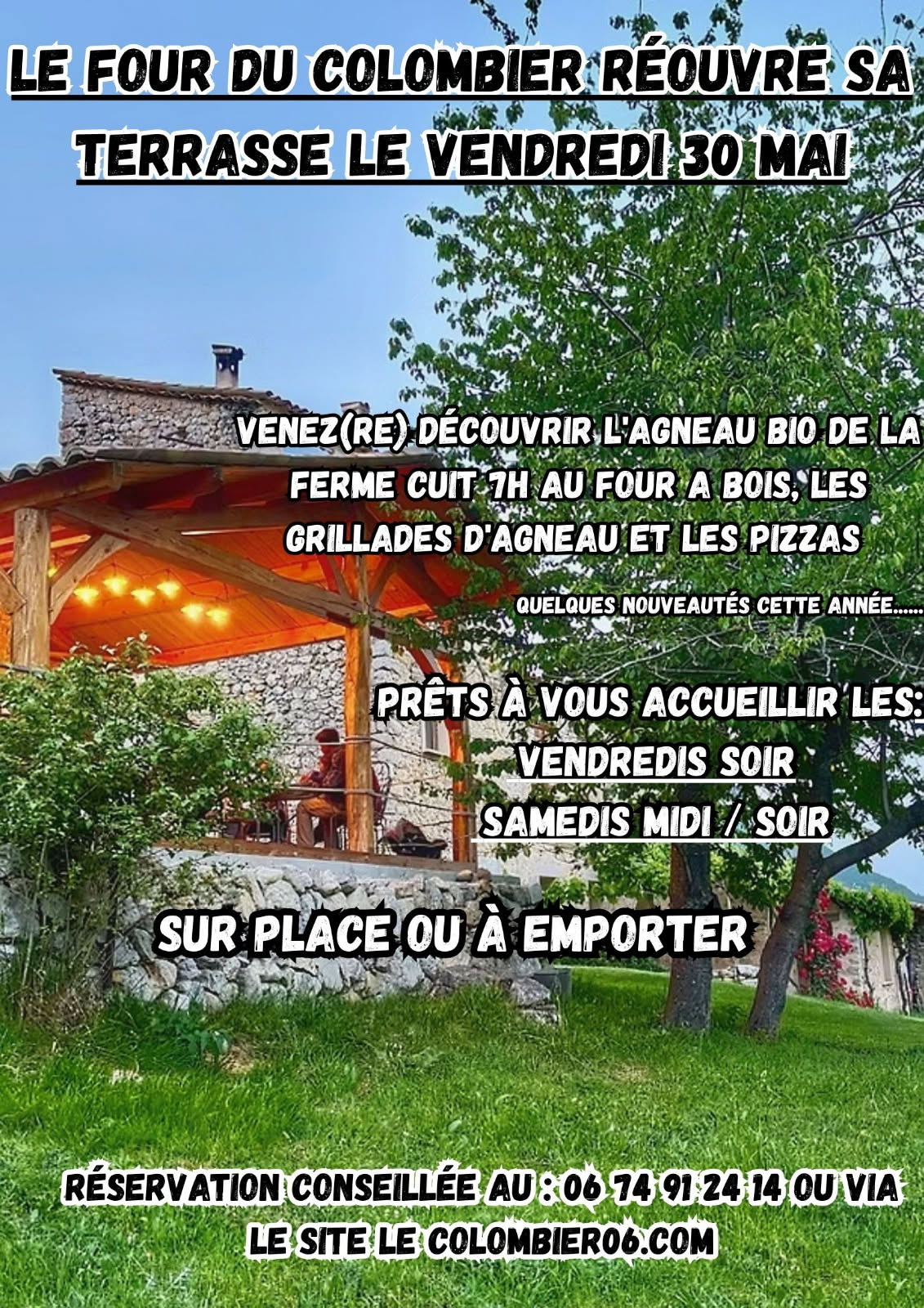 Le Colombier ferme à Briançonnet 06850. Ouvert cet automne Les vendredis soir et samedis midi et soir.. Mise en place du vieux poêle Godin et fermeture de la terrasse avec des bâches Vous pouvez continuer de déguster nos agneaux et pizzas