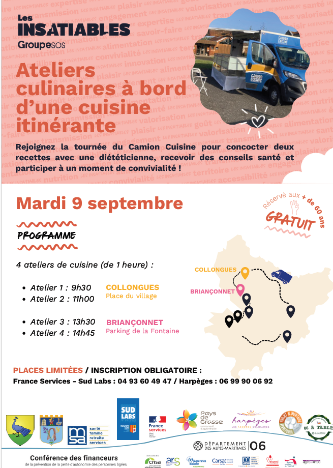 Des ateliers cuisine itinérants avec une diététiciennes auront lieu du 9 au 11 septembre, dans 6 communes du Haut Pays.